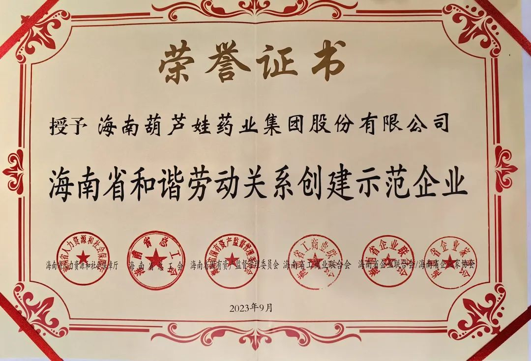 白菜导航网药业集团获评“海南省和谐劳动关系创建示范企业”